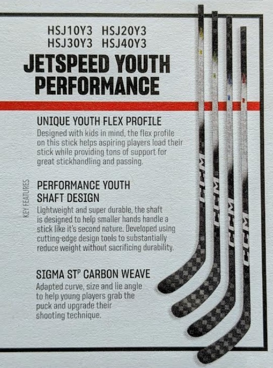 The CCM JETSPEED Youth Performance Stick helps young players refine their skills with a lightweight, durable design.