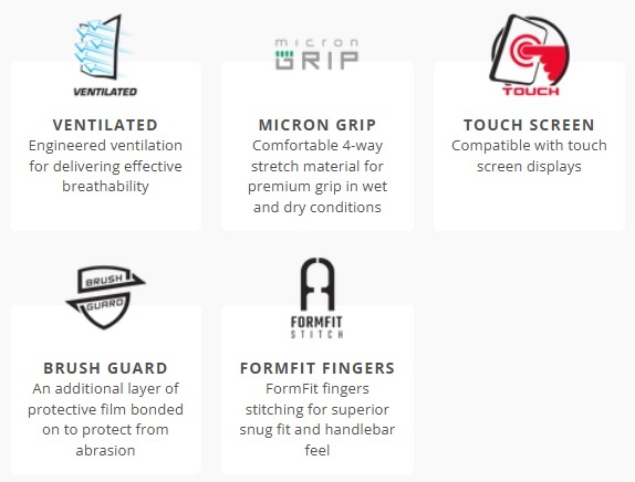 - FormFit fingers stitching for superior snug fit and handlebar feel