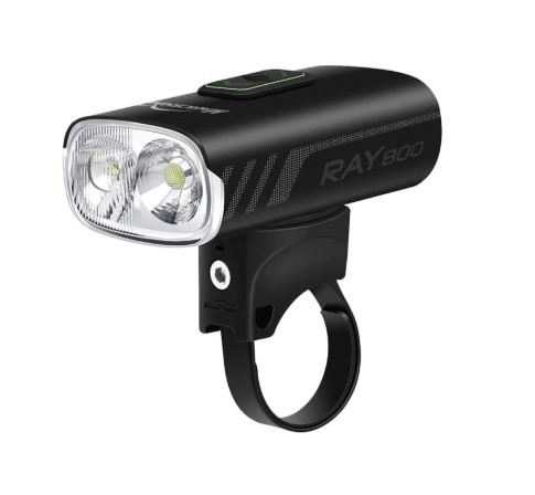 The RAY 800 is a fantastic entry point for those looking to both see and be seen while riding at night. Equipped with two high-power LEDs, it offers a maximum output of 800 lumens. The light features a combination of a long reach spot light and a close-in flood light, ensuring optimal visibility. With up-down brightness control and an accurate battery display, you can easily monitor and adjust settings. The lock function prevents mis-operation for a hassle-free experience. The RAY 800 is powered by two 18350 USB-C rechargeable batteries, providing a burning time of 1.5 hours at maximum output. It is compatible with Garmin handlebar mounts and helmet mounts, offering versatile mounting options. The light is also waterproof with an IPX6 rating, ensuring durability in various weather conditions. With a compact size of 66x41x27mm and a lightweight design weighing only 115g, it is easy to install and carry during your cycling adventures.