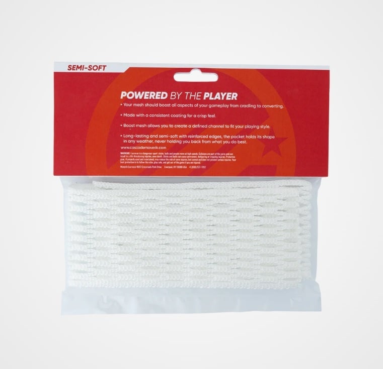 Your mesh should boost all aspects of your game play from cradling to converting. Made with a consistent coating for a crisp feel, Boost mesh allows you to create a defined channel to fit your playing style. Long-lasting and semi-soft with reinforced edges, the pocket holds its shape in any weather, never holding you back from what you do best.