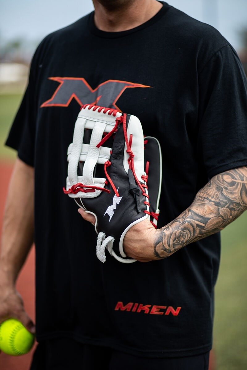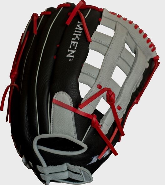 Miken Player Series slow pitch softball glove features a large 15" professional inspired slowpitch specific pattern to help you catch every ball that comes your way. Constructed from soft, full-grain leather for enhanced durability and requires little-to-no break-in. The PORON XRD palm pad reduces ball impact on your hand, and the adjustable pull-strap back allows for a custom fit around your wrist.