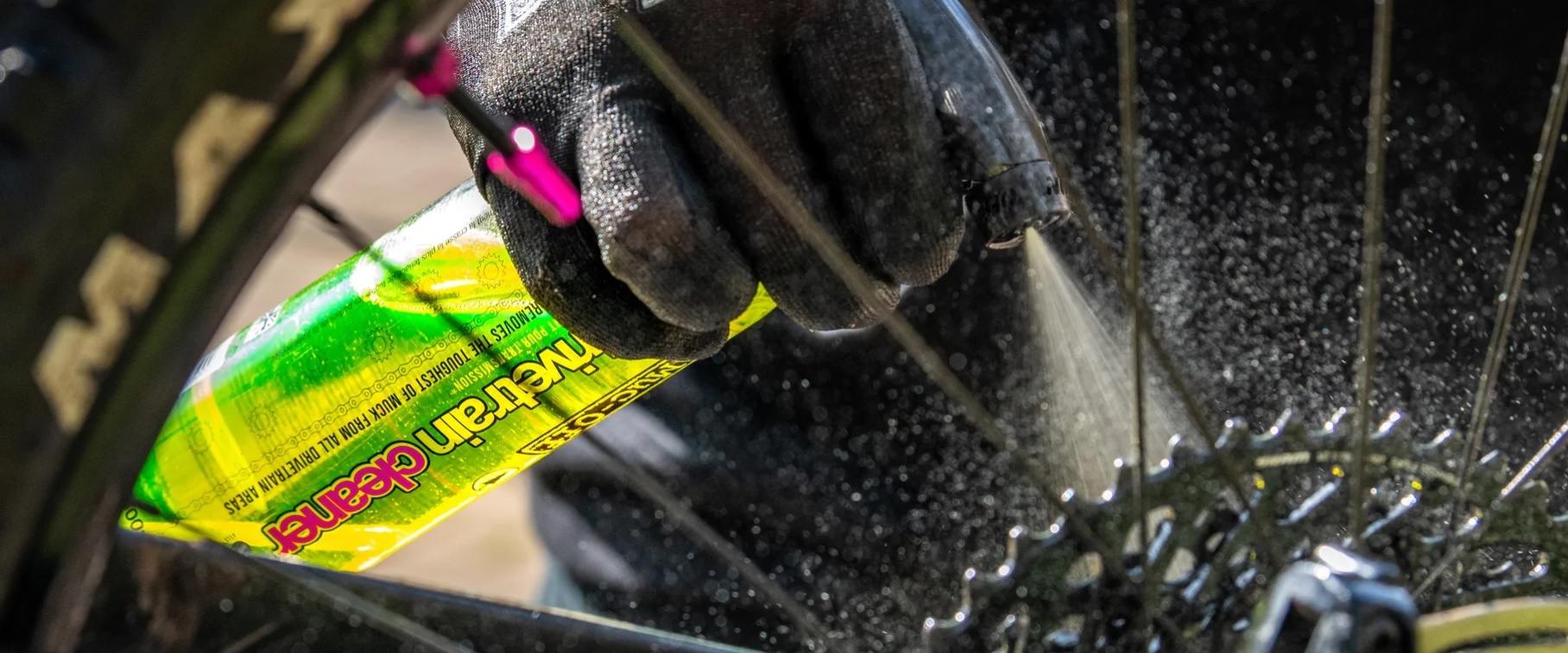 - Spray all over the drive chain including cassette, chainrings, chain and derailleurs