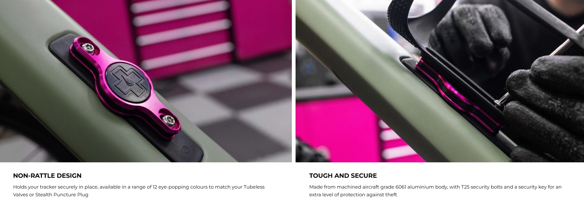 The Muc-Off Secure AirTag™ Holder is a super secure way to install an AirTag* to your bike frame using the bottle cage mounting holes, meaning you can track down and locate your steed with the FindMy™ app, should pesky thieves get their hands on it!