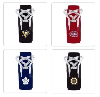 Laced Bottle Suit keeps your drinks cold and your hands warm. Fits most standard 12-ounce bottles. Makes a great gift for any hockey fan. Material: 100% Neoprene. Officially licensed.