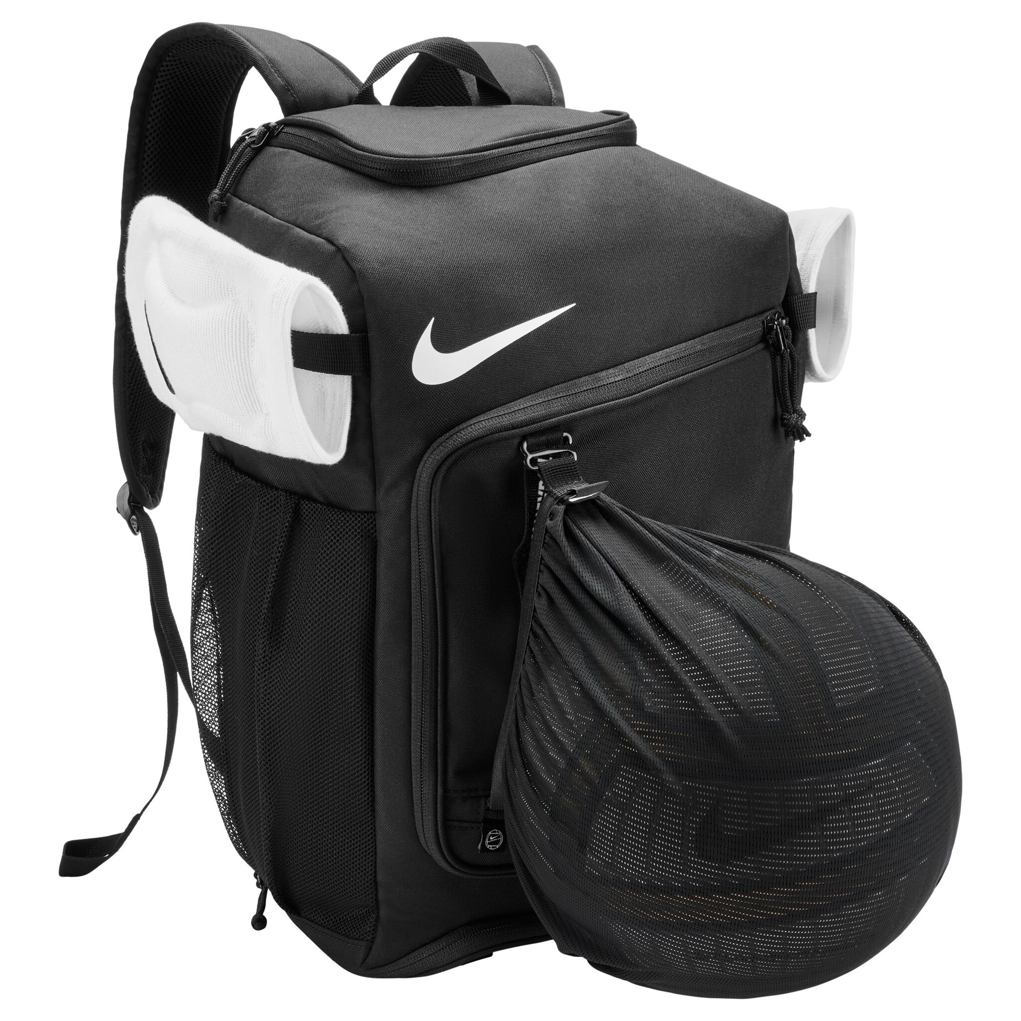 Keep all your game-day gear organized in the locker-style main compartment or the breathable shoe section. Plus, a detachable ball pouch clips onto the front pocket, and base straps add extra space and airflow for your equipment.