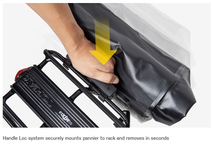 - Our new Handle Loc system quickly and securely attaches the pannier to the rack and is quickly removed with a simple upward press & pull of the top mounted carry handle