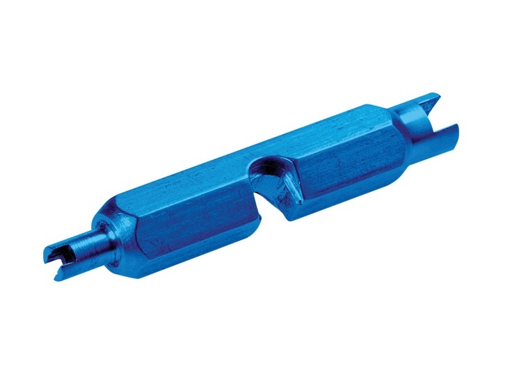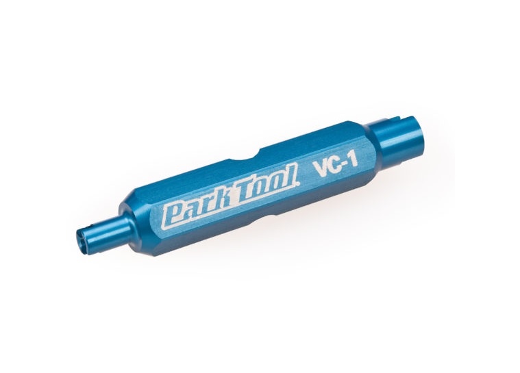 The VC-1 is a small, handy tool designed to remove and install Schrader and Presta valve cores, as well as Presta valve extenders with 5 mm wrench flats. Helpful for setting up tubeless tires, replacing damaged or leaking valve cores, or rapidly letting air out of large-volume tires.