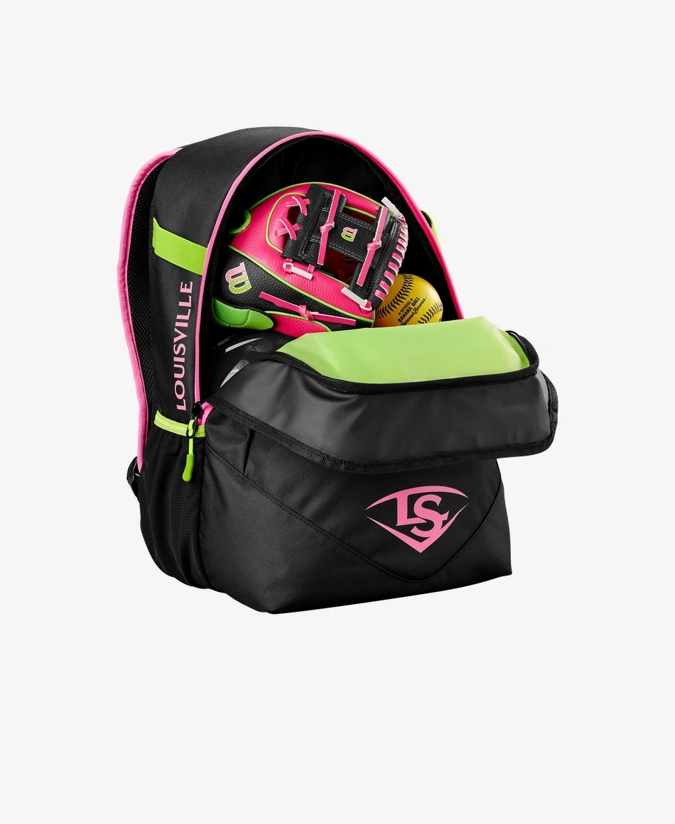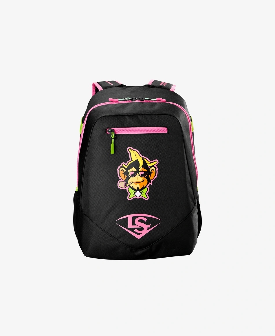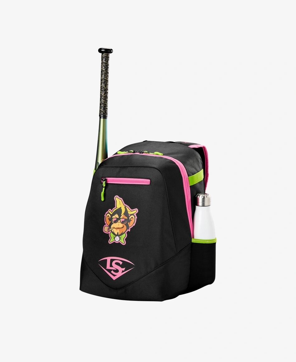 Help your young ballplayer fall in love with the game with the Party Animals Powerized Stick Pack. Inspired by Party Animals, the arch-rival of the Savannah Bananas, this Black and Neon Pink bag’s large main compartment fits a helmet, glove and more. Two mesh sleeves on the sides can carry bats or water bottles, and the foam padded shoulder straps keep your player comfortable on the walk to the field.