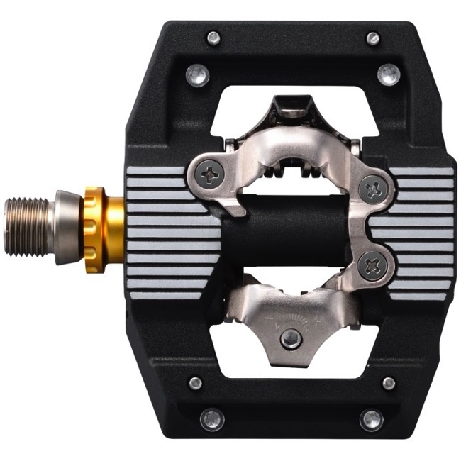 - Non-pop-up alloy pedal body for simplicity and durability