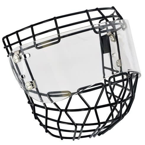 Steel wire Ringette cage combined with a highly durable polycarbonate lens shield.