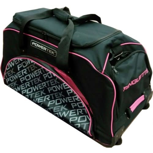 Heavy-duty zippers. Removable end pocket. 840D construction. Large front pocket for skates. Padded, durable shoulder strap, stick holder on one side!