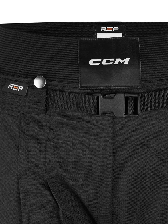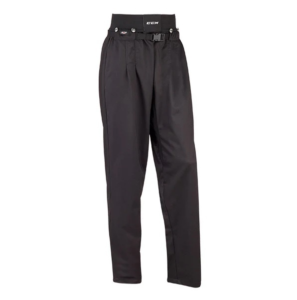 The CCM PPREF Referee Pants offer a lightweight fit but are designed to keep the official fully mobile and looking sharp. They fit snug around the waist from the elastic waistband and secure down with an adjustable nylon belt. Plus, they are built with integrated suspender buttons around the waist.