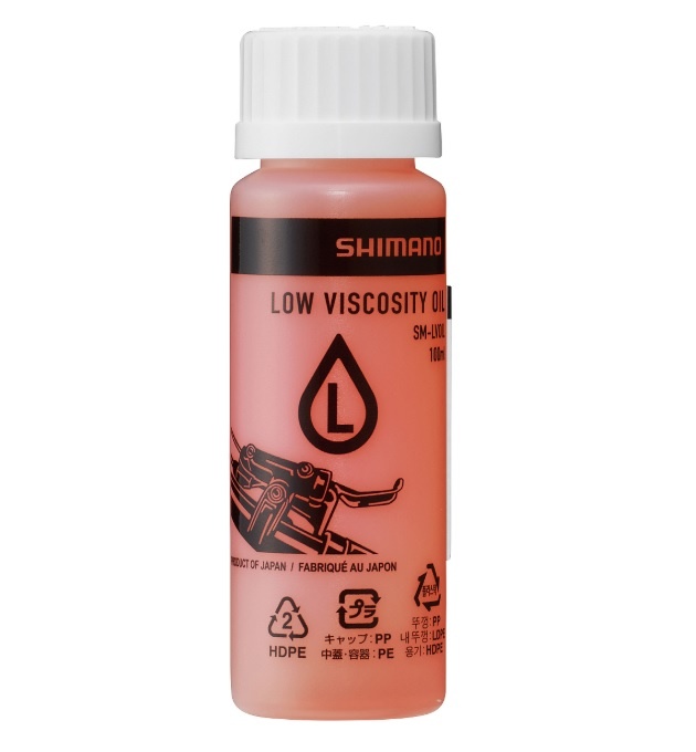 Brake fluid for filling hydraulic Shimano disc brake systems. Version with lower viscosity.