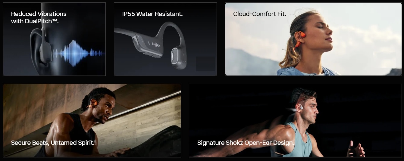 Previous bone conduction headphones often produced strong vibrations. DualPitch™ Technology solves this by assigning low frequencies to the air conduction driver, generating minimal vibrations for less tactile feedback.