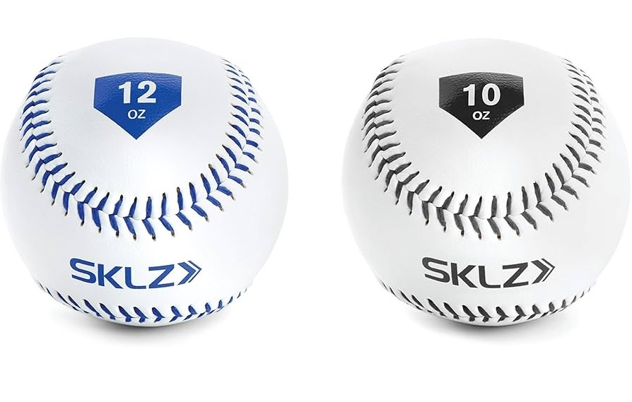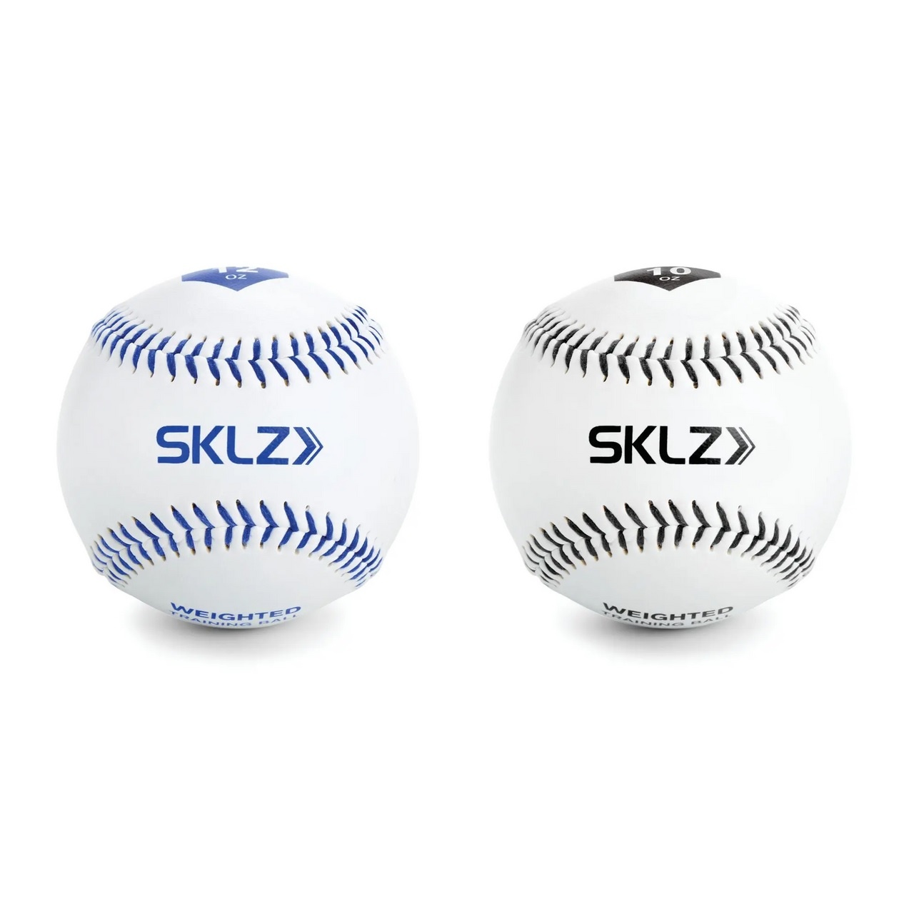 Heavier than regulation balls, SKLZ Weighted Baseballs help players of all skill levels and ages build arm strength during long toss and short throwing drills. Featuring the same construction and materials as an official baseball, these 9” balls have real raised seams and a leather cover. Ideal for use during practice or pre-game warm up. Every pack of Weighted Baseballs features two balls with two different sizes; the 10 oz and 12 oz.