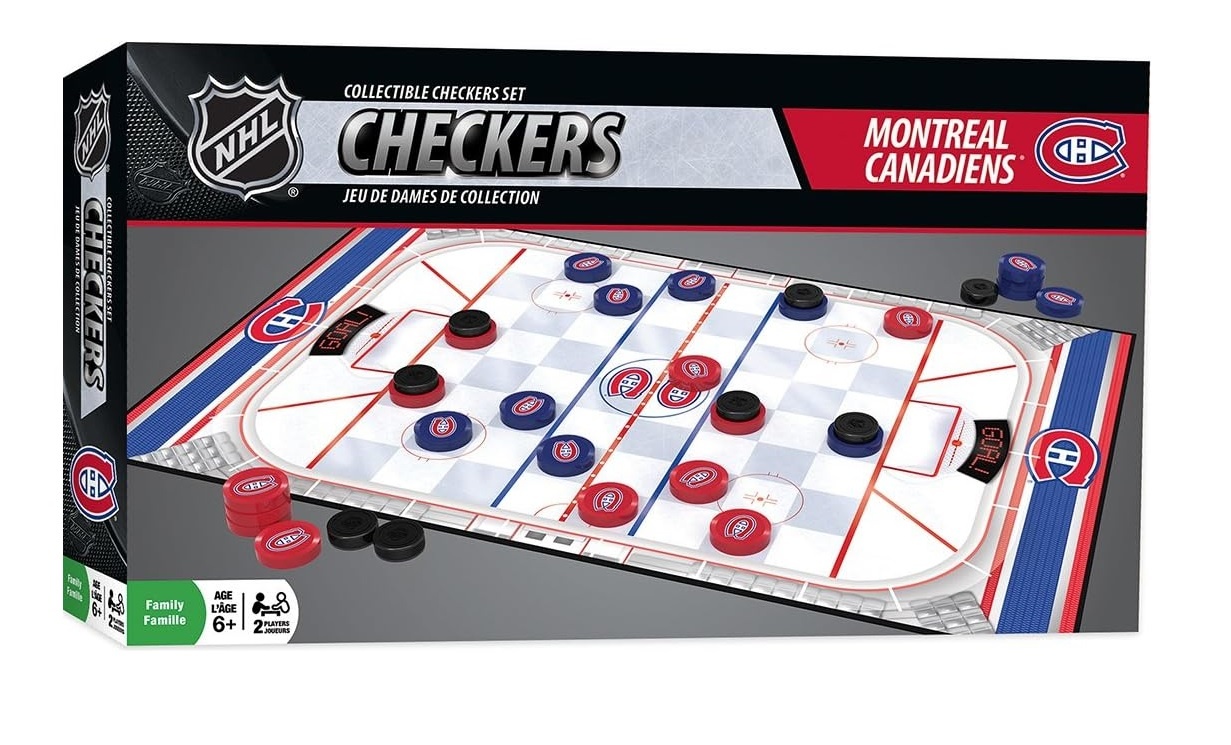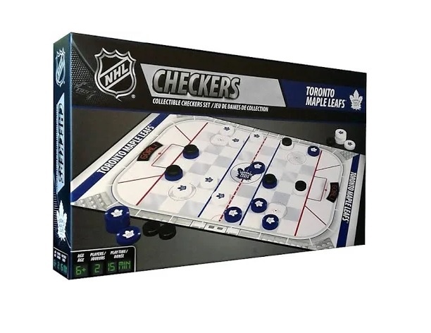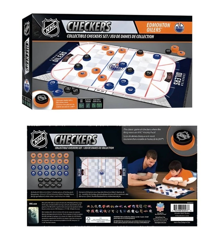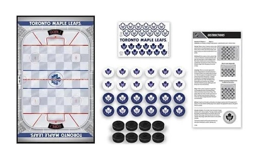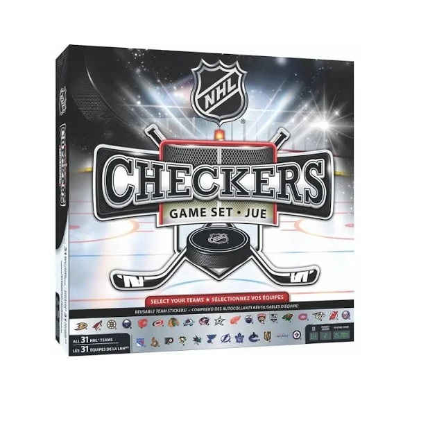 Up the ante on your regular checkers game with the NHL League Checkers Board Game! Challenge your opponent on a 13" x 20.5" NHL hockey arena board, complete with 24 classic checkers pieces, 8 puck-wearing kings, plus 8 sticker sheets to show off your favorite NHL teams. Play the game with a puck-ish twist and advance your pieces to checkmate with a ‘bang!’ (or should we say slapshot!)