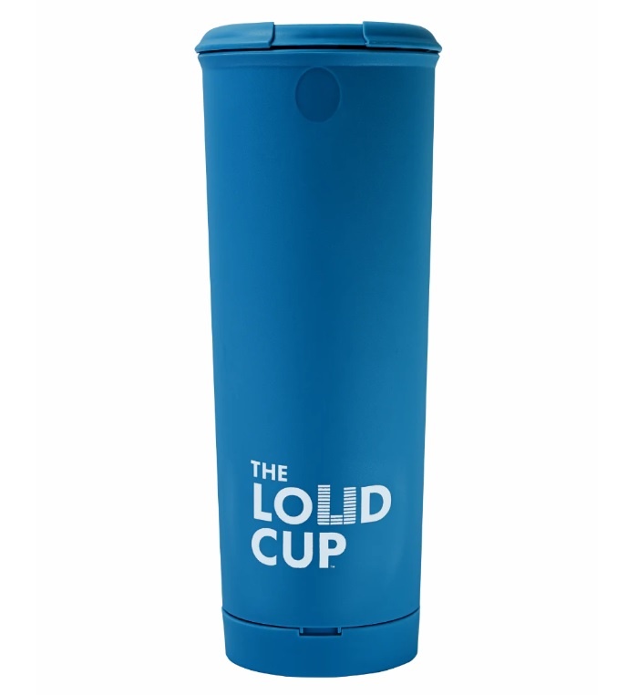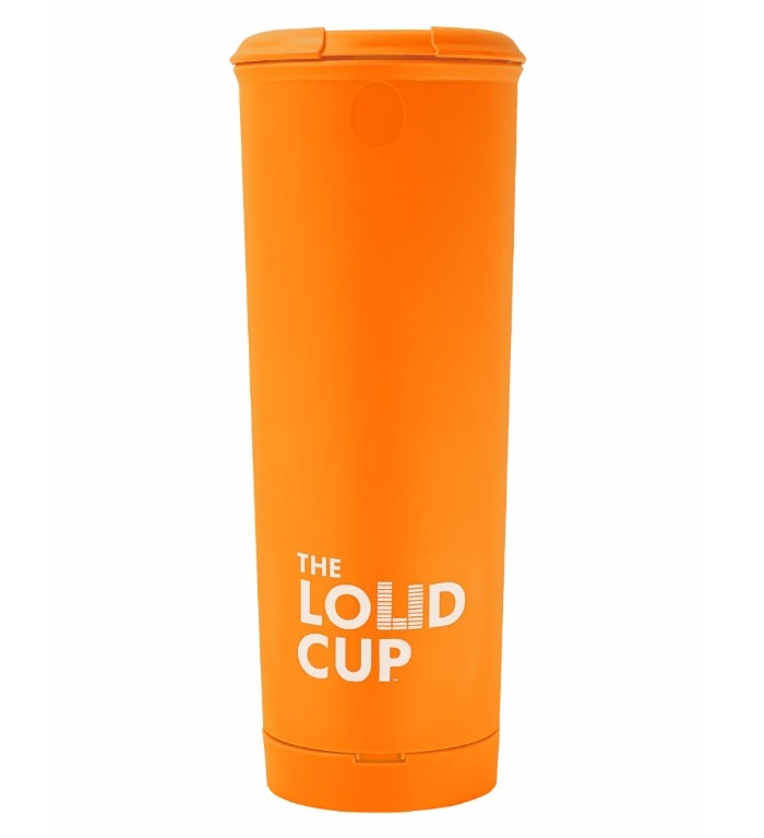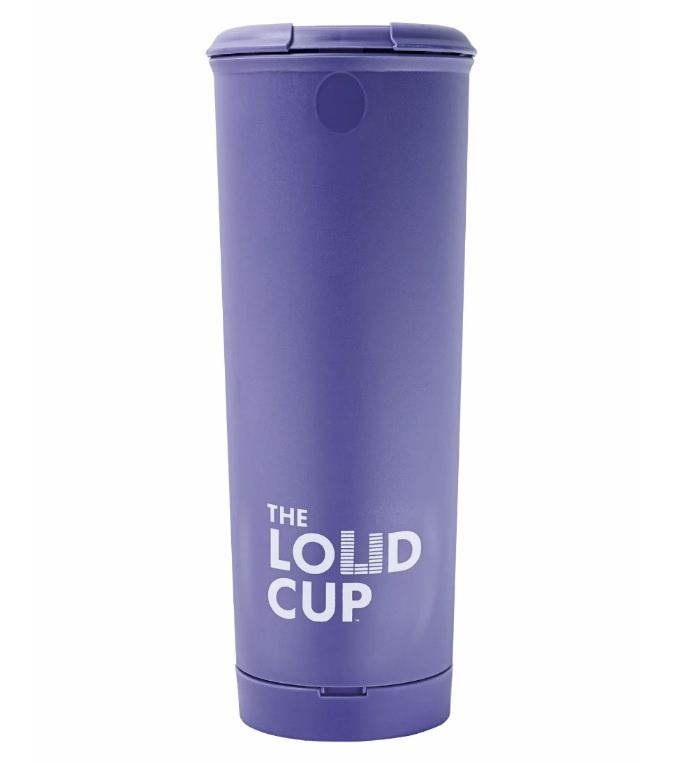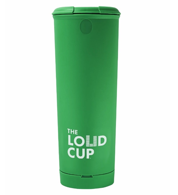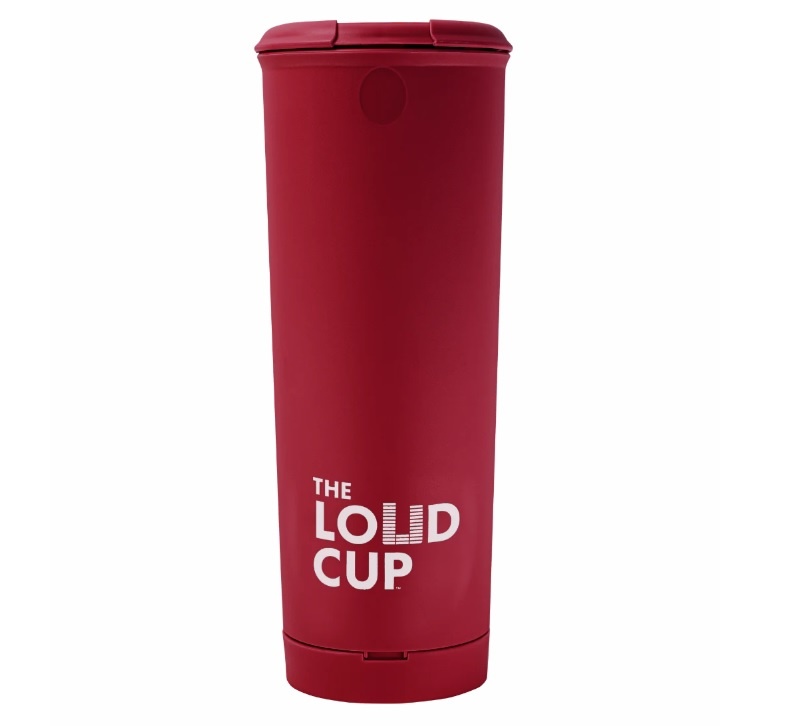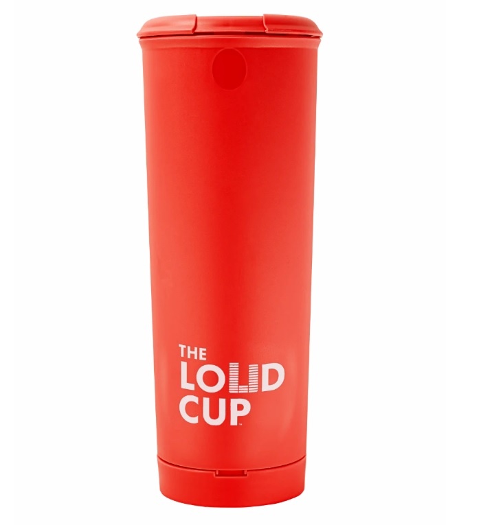 LoudCup cleverly integrates a horn inside a standard tumbler mug. It's the #1 fan's secret weapon!