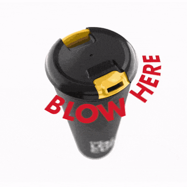 Turn the cup around and activate the horn by blowing into it. You control the volume! The harder you blow, the louder the horn will be.