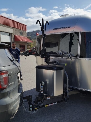 - The Straddler is being introduced to give Travel Trailer owners the ability to mount a bike rack on the nose of their travel trailer. This innovative rack will clamp onto the triangular frame, telescoping and rotating legs allow for fitting to a variety of trailer designs with the capability of rising over even 30lb LP Tanks.