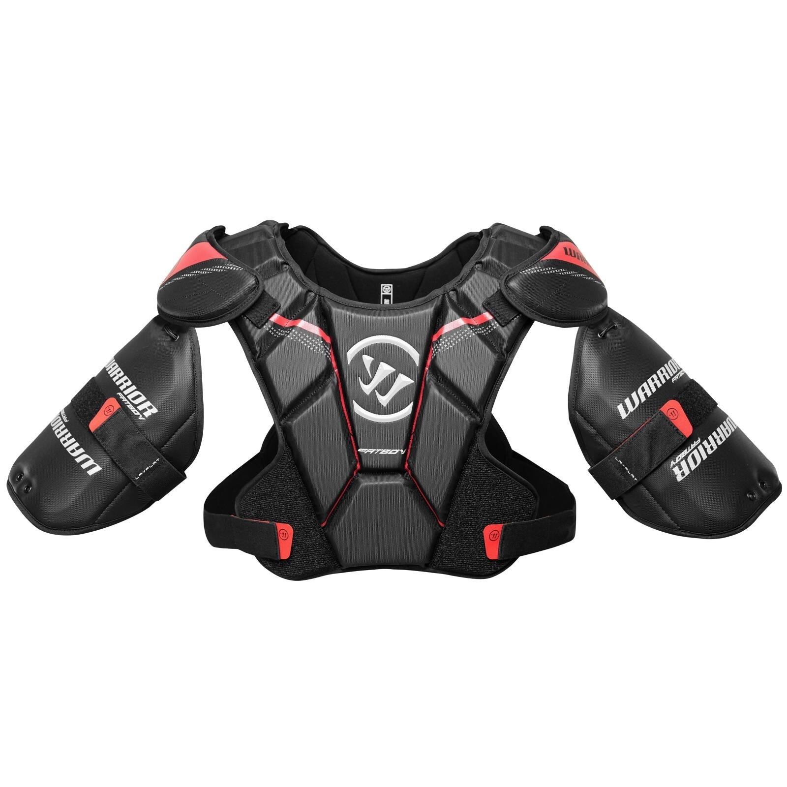 The Warrior Fatboy Lacrosse Shoulder Pads deliver top-tier protection for box lacrosse players. Designed for increased coverage, they enhance impact performance on the sternum, back, and shoulders. The 2-Timer Strap System ensures a secure, custom fit, while durable bicep pads provide superior upper-arm protection.
